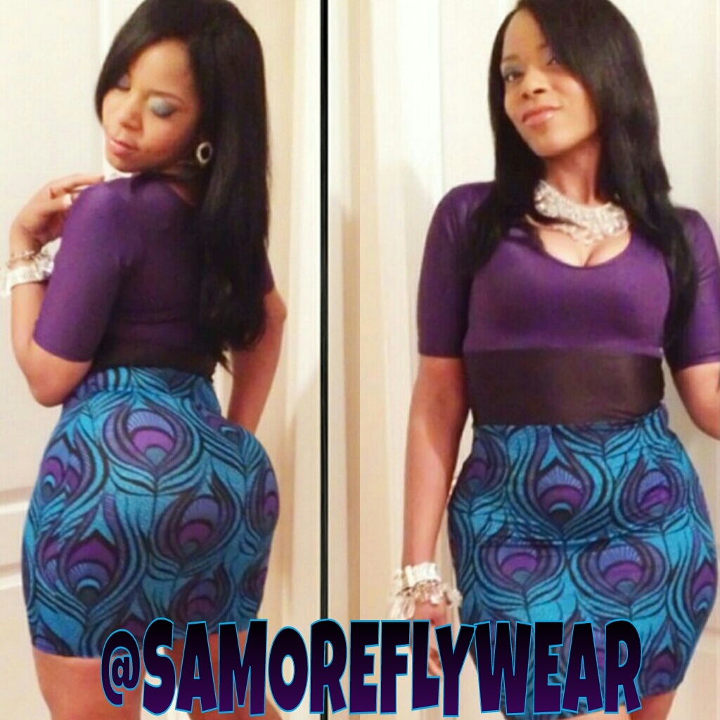 Features form-fitting style with layered color block, purple top as first layer, the brown waistband is the second layer and the peacock skirt part is the last layer, which is really creative and fashionable. Express your passion and seething feeling by this atmospheric skintight mini dress to highlight your feminine flavor. High heels and a exquisite handbag are nice addition.